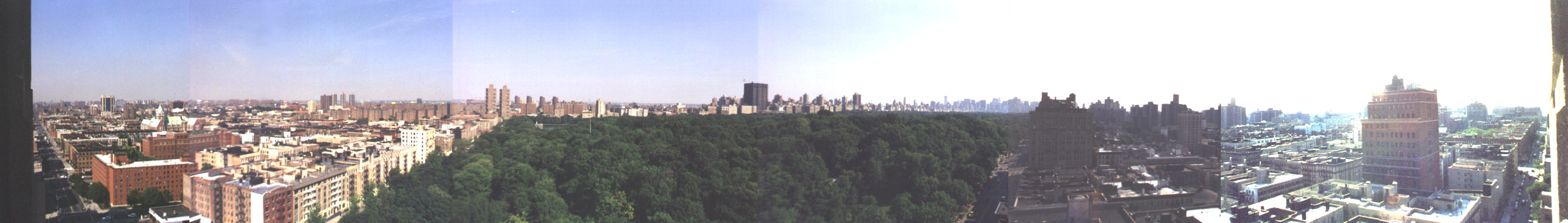This is a composite shot of the 270 degree view of New York City from my apartment. The shot starts on the left facing North. It then sweeps to the East, then South toward downtown, and finishes facing West. Downtown, in the hazy distance right of center, is actually much closer than it appears here. I used a wide-angle (28mm) lens, so it seems much farther away.